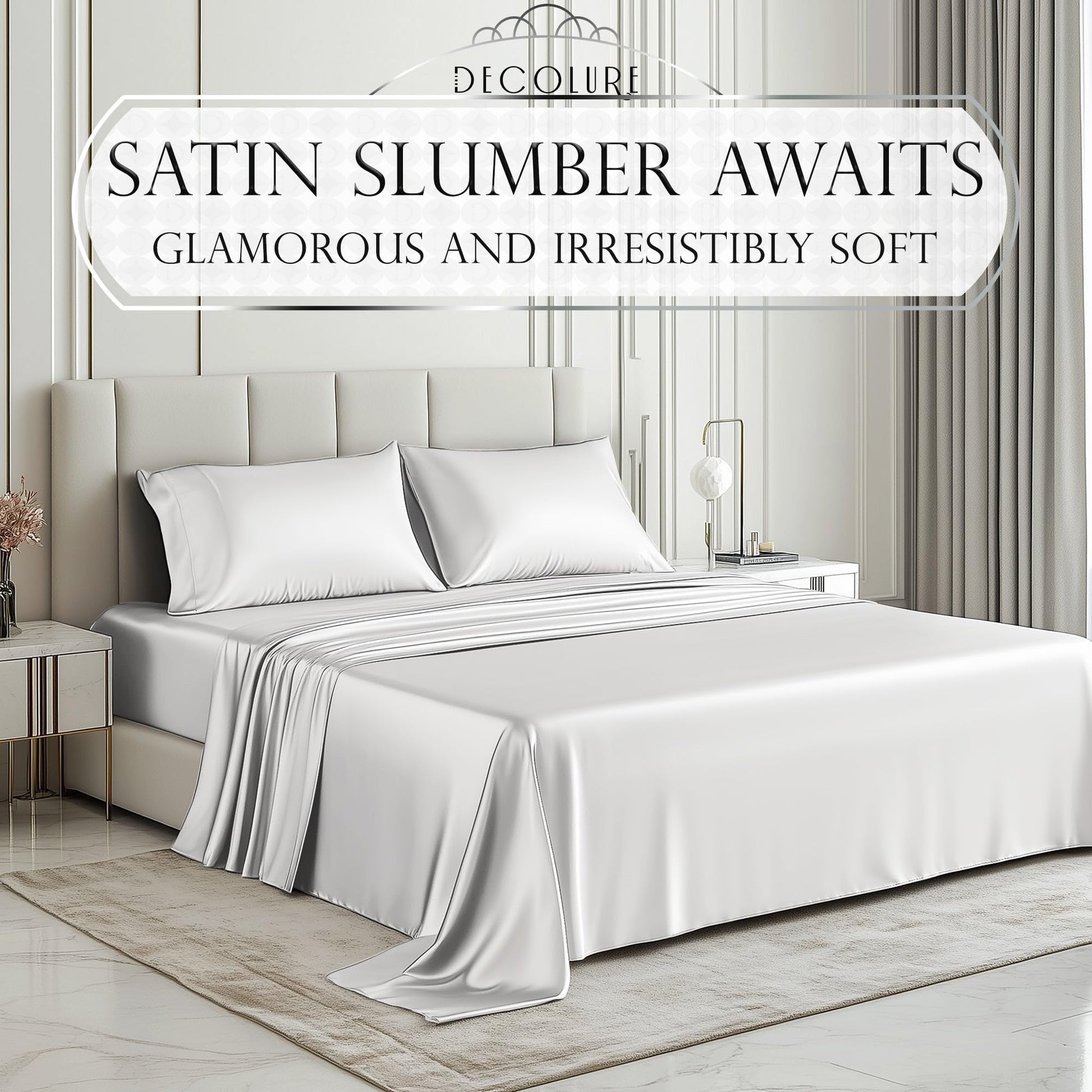 Experience timeless luxury with white satin sheets offering a silky, breathable texture for cooling comfort. The glossy satin finish adds elegance, while the deep pockets ensure a perfect fit. Enjoy affordable luxury and high-quality durability for peaceful nights.