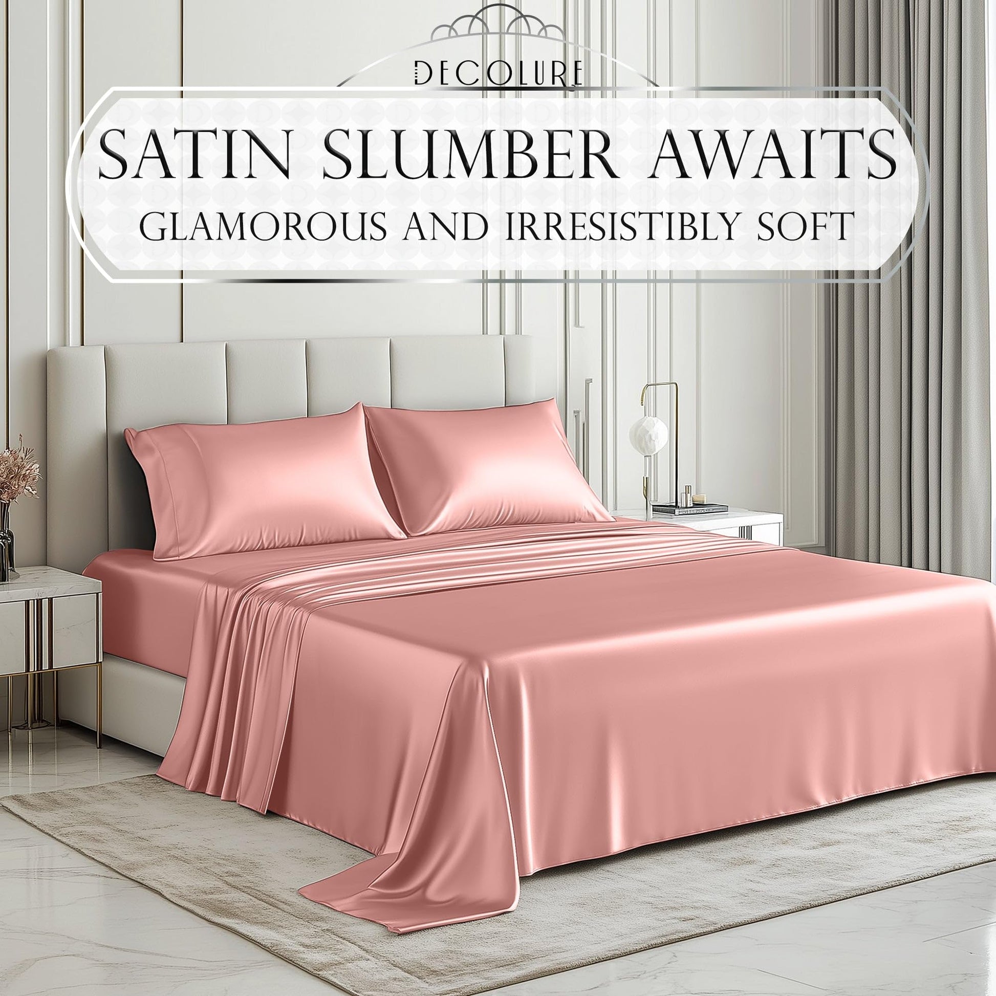Elevate your bedroom with blush pink satin sheets featuring a silky, cooling feel. The glossy satin finish adds a romantic charm, while the deep pockets ensure a secure fit. Experience hotel-level comfort and long-lasting quality every time you sleep.