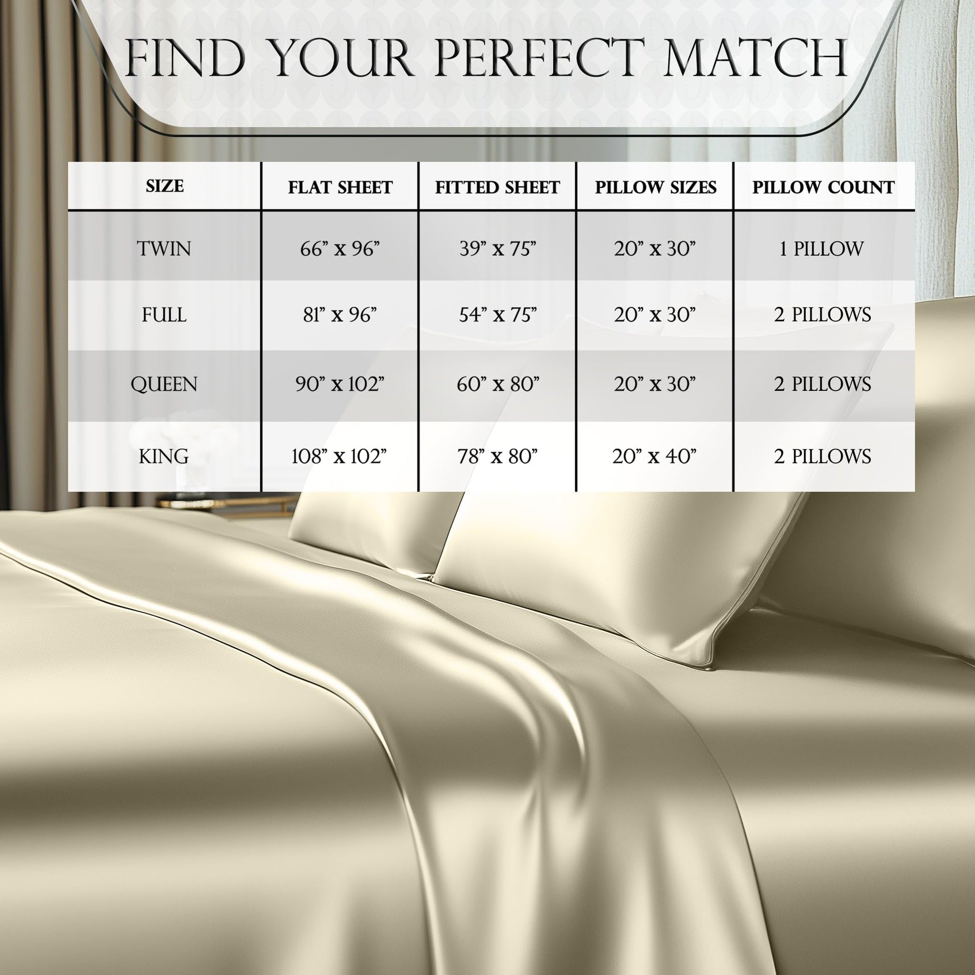 Turn your bed into a serene retreat with champagne satin sheets that shimmer with silky softness. The breathable design and glossy satin finish deliver hotel-like luxury and all-night comfort. Durable quality ensures your bed always feels effortlessly elegant.