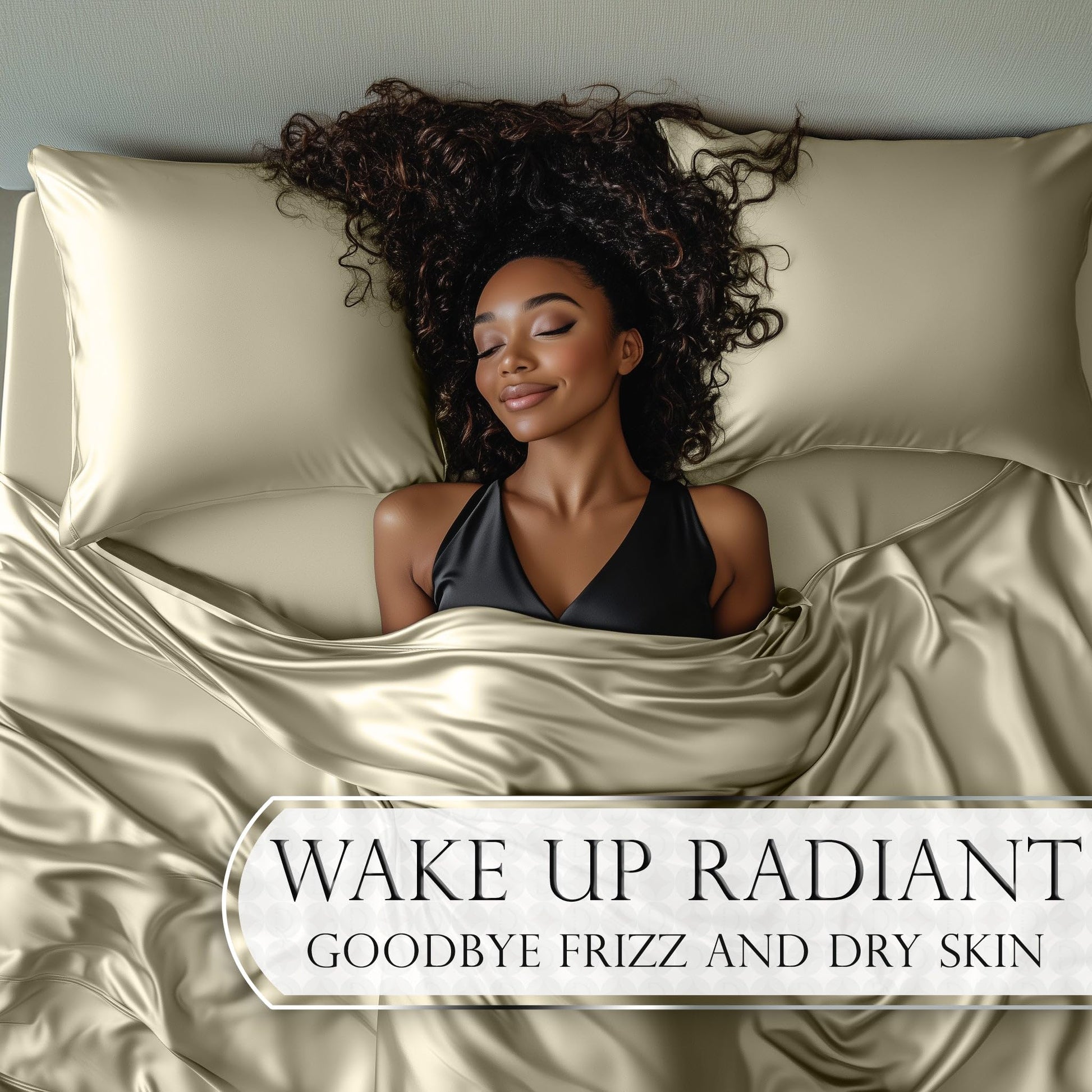 These champagne satin bed sheets are crafted for elegance and comfort. The fitted sheet’s deep pockets hug mattresses securely, while the breathable weave keeps you cool all night. Known as some of the best satin sheets, they’re smooth, durable, and fade-resistant. Perfect for satin sheets queen or satin sheets king, this satin sheet set creates a luxe sleep experience in your own home.