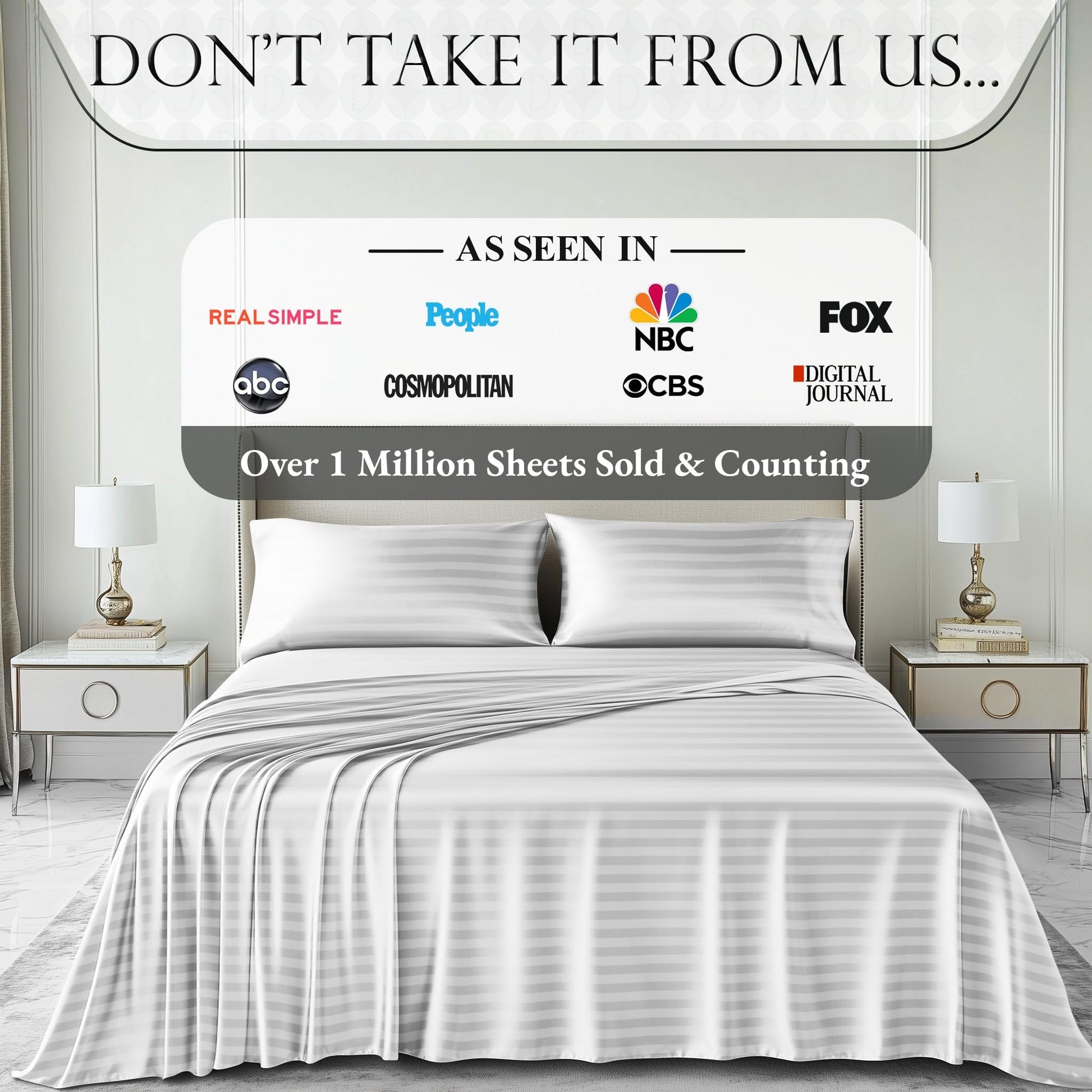 Striped White satin sheet set Includes