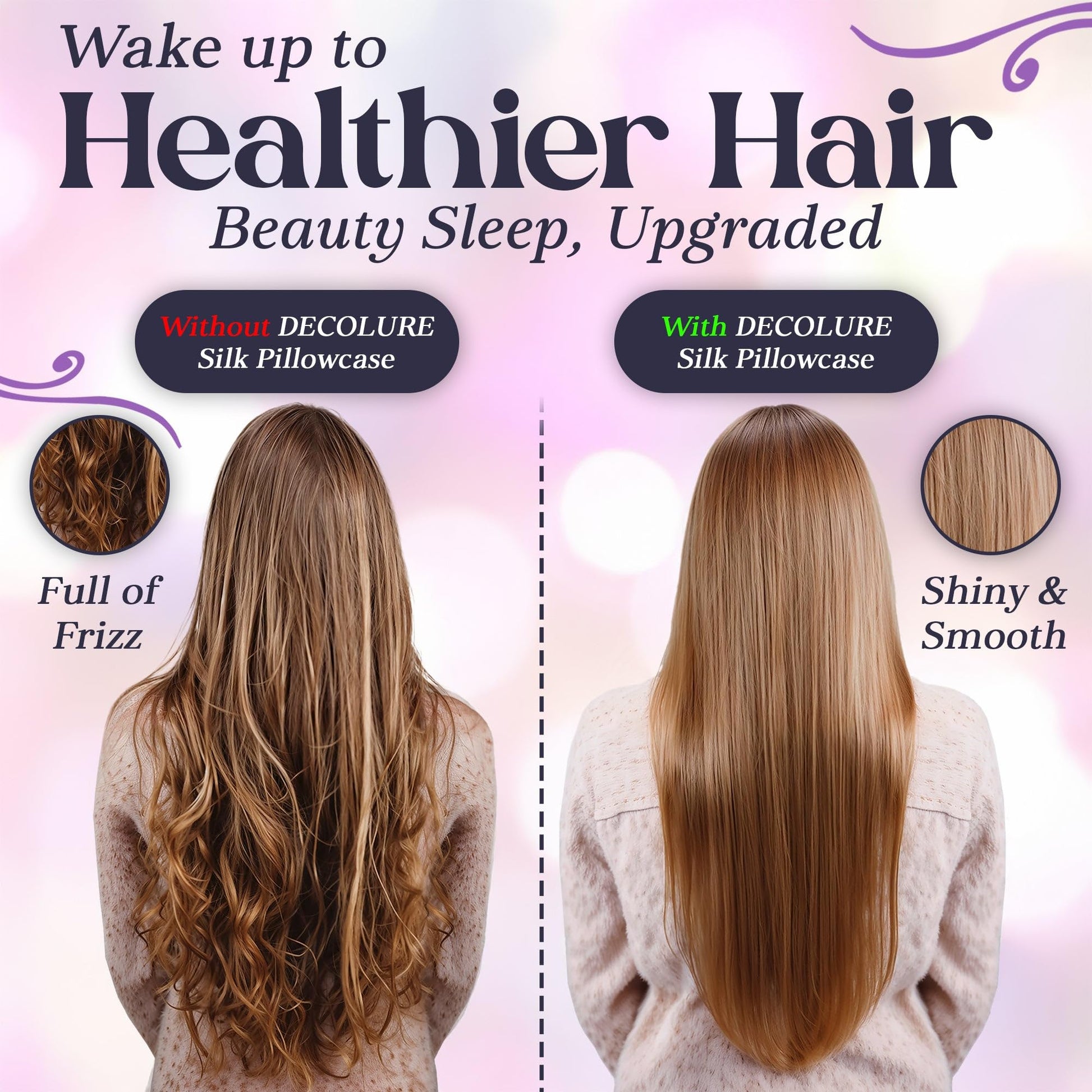 Indulge in timeless luxury with the DECOLURE silk pillowcase. Made from 30 Momme 100% Mulberry silk, this premium pillow cover is smoother, stronger, and more durable than satin alternatives. Its natural cooling properties regulate temperature and wick away moisture, making it the ideal choice for hot sleepers. Gentle on hair and skin, this silk bed pillowcase helps reduce frizz, tangles, and breakage while minimizing fine lines and dryness. The hidden zipper closure ensures a snug fit and prevents slipping, combining beauty with functionality. Unlike satin, this silk pillowcase maintains its shine, softness, and vibrant color even after washes, offering both elegance and practicality in one.